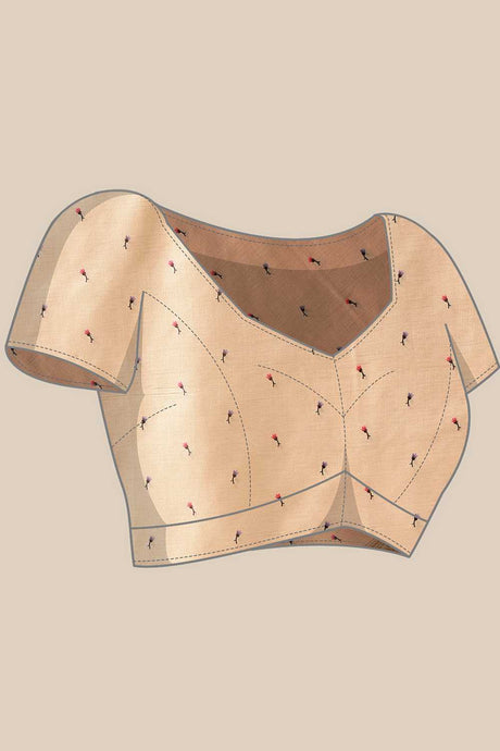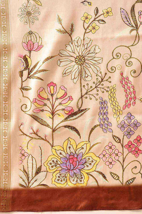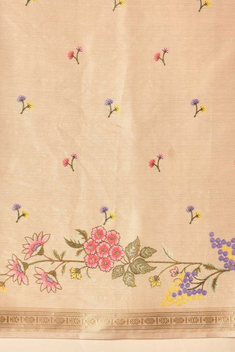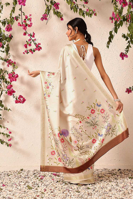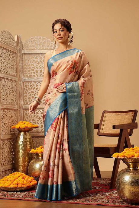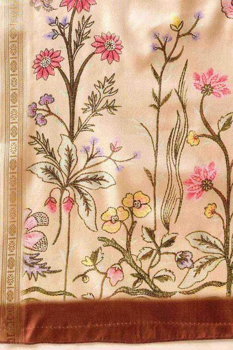 Beige Floral Printed Tissue Silk Saree