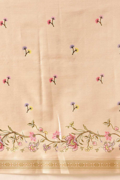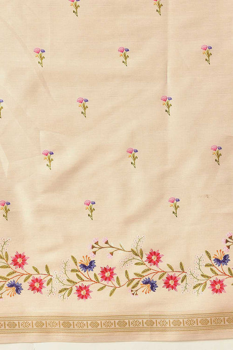 Beige Floral Printed Art Silk Saree