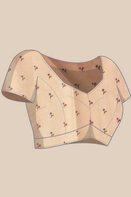 Multi-Color Floral Printed Cotton Blend Saree