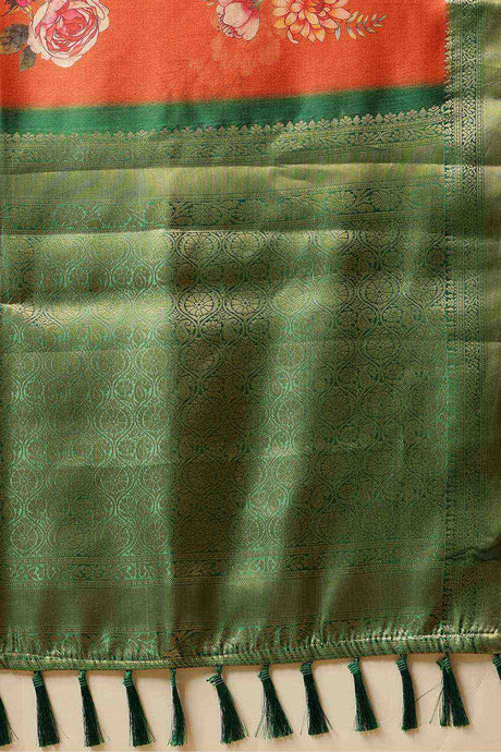 Orange Floral Printed Silk Saree