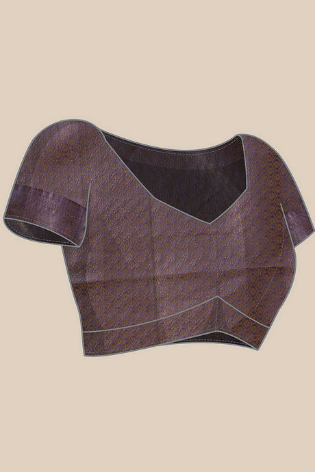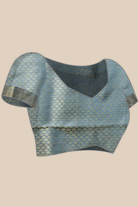 Grey Floral Printed Tissue Silk Saree