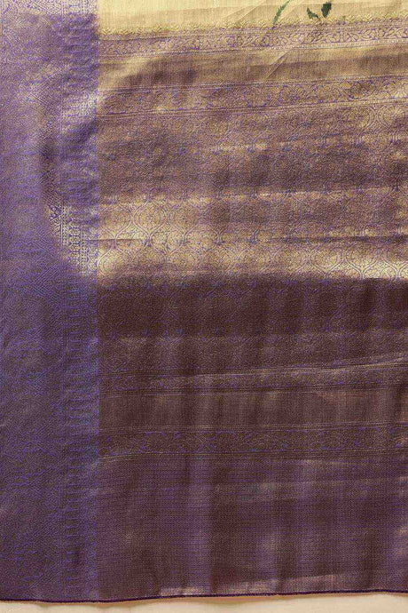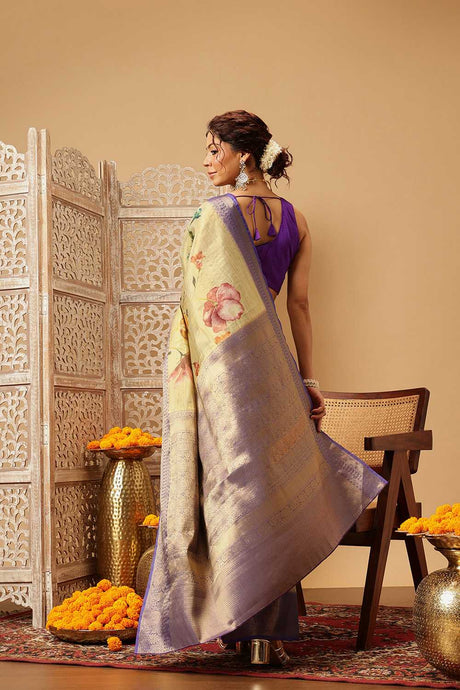 Lavender Floral Printed Tissue Silk Saree