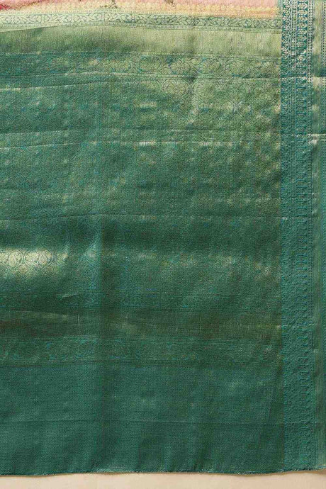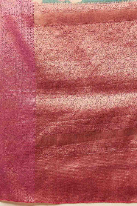 Green Floral Printed Tissue Silk Saree