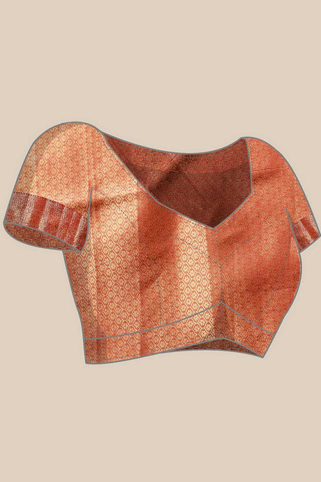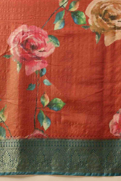 Rust Floral Printed Tissue Silk Saree