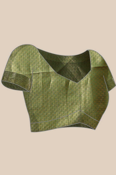 Olive Green Floral Printed Tissue Silk Saree