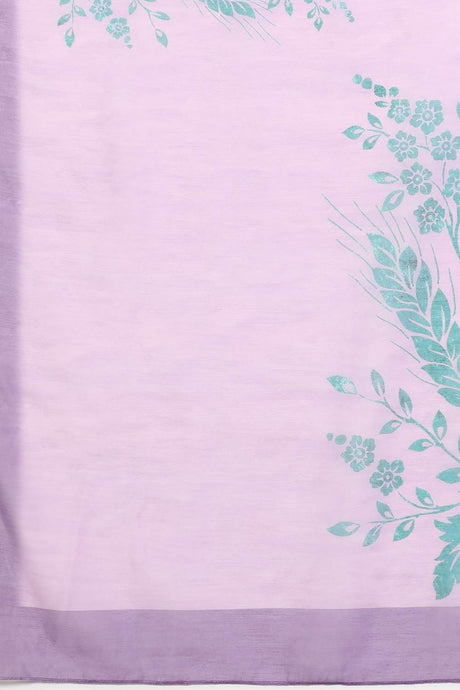 Violet Floral Printed Cotton Blend Saree
