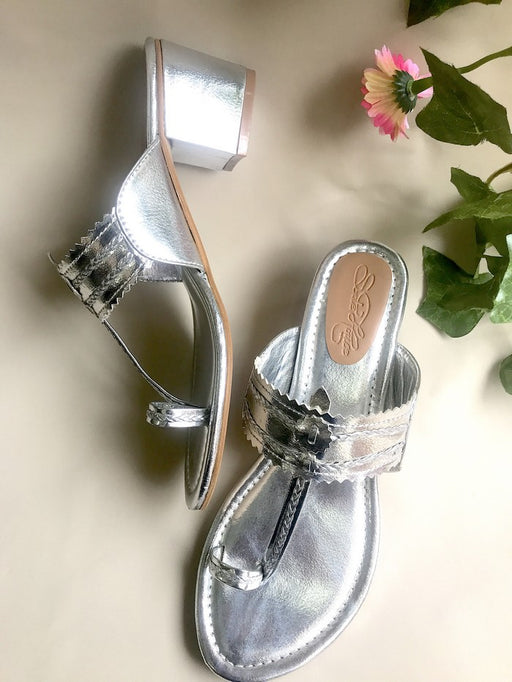 Sale price $132.00 USD Regular price $158.00Unit price /Unavailable Vegan Leather Kolhapuri Block Heels In Silver