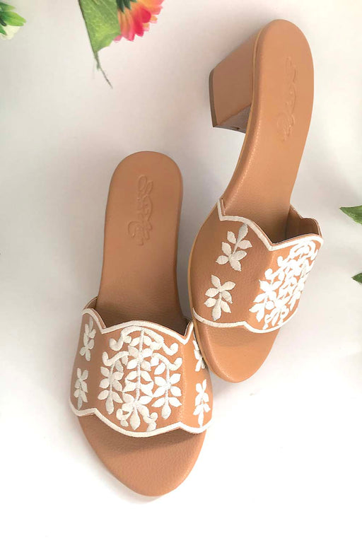 Vegan Leather Kolhapuri Block Heels In Beige And Gold