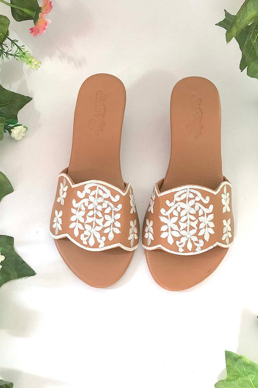 Soft Faux Leather Kolhapuri Flats In White And Pink