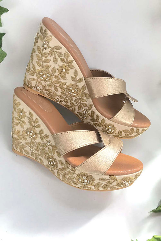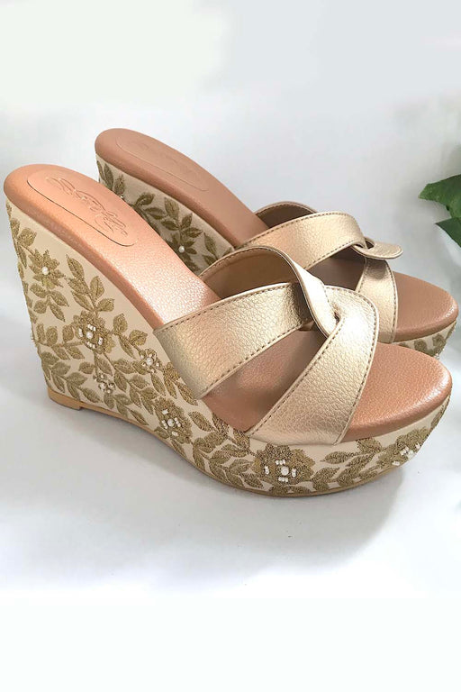 Vegan Leather Kolhapuri Wedges In Dusty Gold