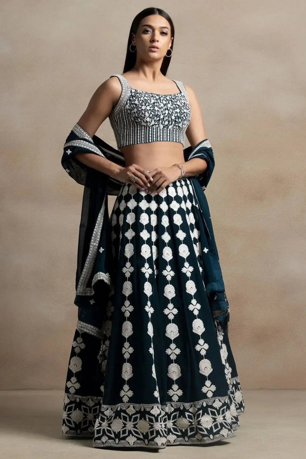 Step into the spotlight with our Lehenga a dazzling creation designed to make your special moments unforgettable. Crafted from premium Georgette this lehenga offers a perfect combination of elegance and ease, keeping you graceful all day long. The exquisite Thread Work makes this lehenga a masterpiece of traditional craftsmanship. Whether it’s Sangeet,Mehendi,Party or a grand celebration, this lehenga is the perfect choice to make a statement. Pair it with an ornate choker, a matching dupatta, and embellished stilettos to complete the regal look. Add a sleek bun or cascading curls for added glamour. Make every moment magical with the timeless allure of Lehenga