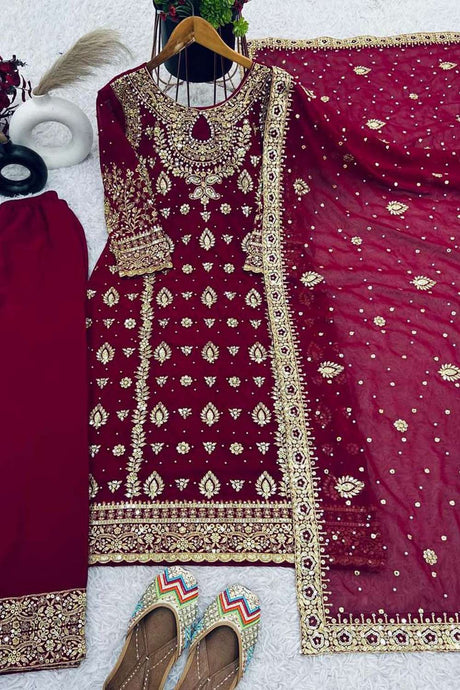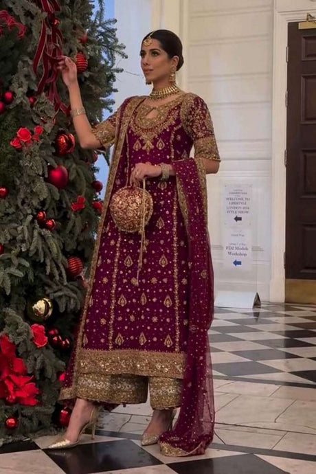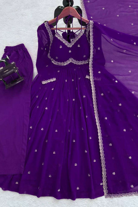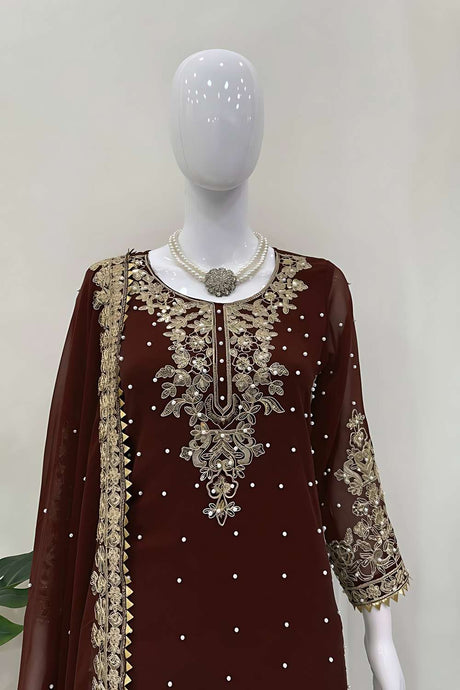 Peach Sequin with Embroidered Georgette Sharara Suit Set