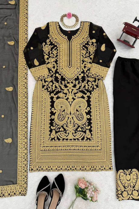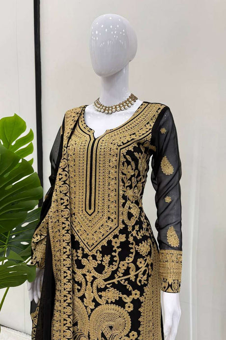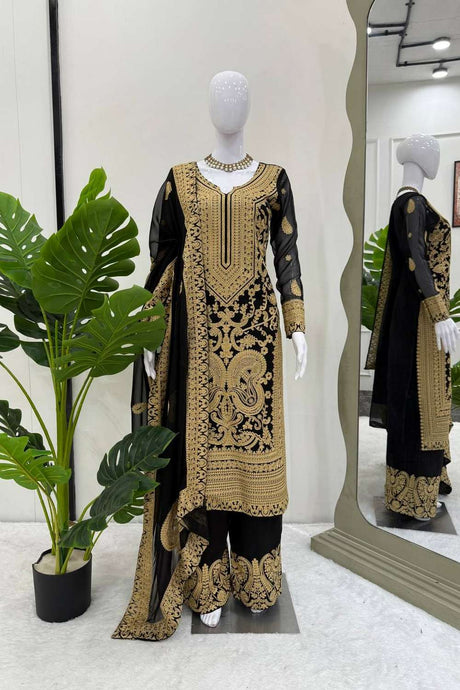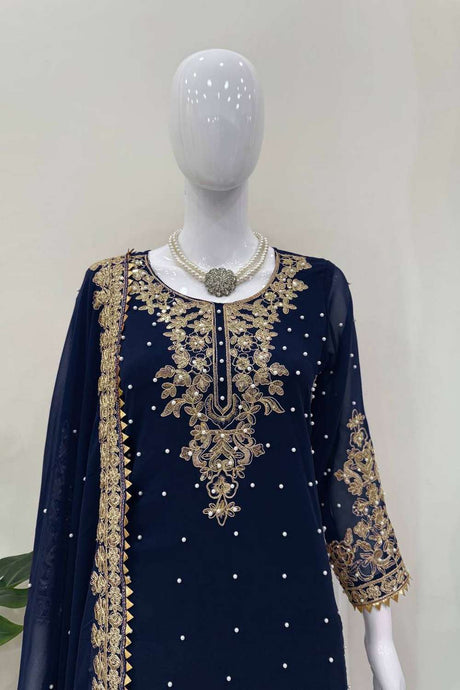 Navy Blue Sequin Georgette Palazzo Suit Set