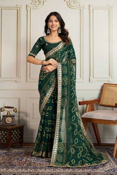 Green Bandhani Printed Georgette Saree