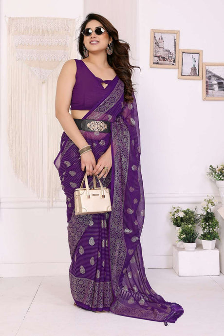 Purple Foil Printed Georgette Saree