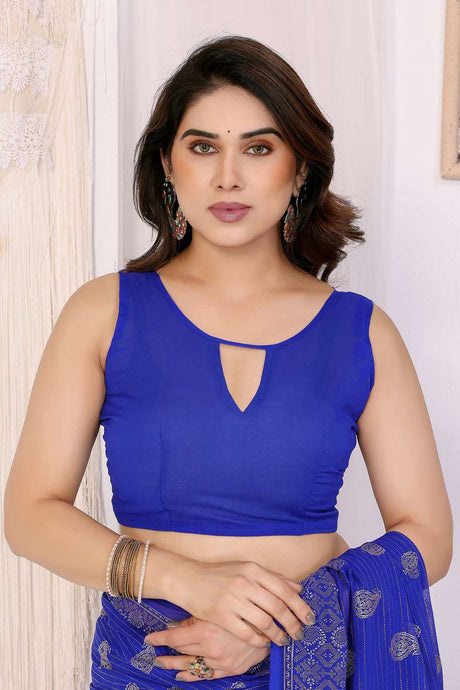 Royal Blue Foil Printed Georgette Saree