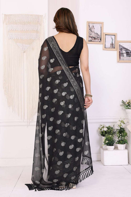 Black Foil Printed Georgette Saree