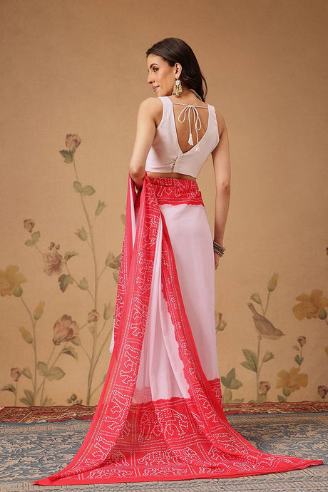 Pink Bandhani Printed Georgette Saree