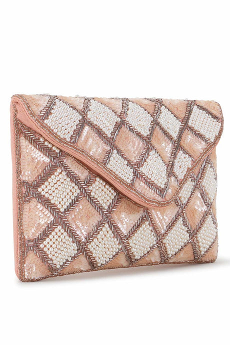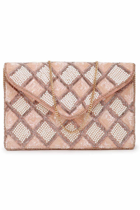 Gold Chevron Sequinned Embellished Satin Sling Bag