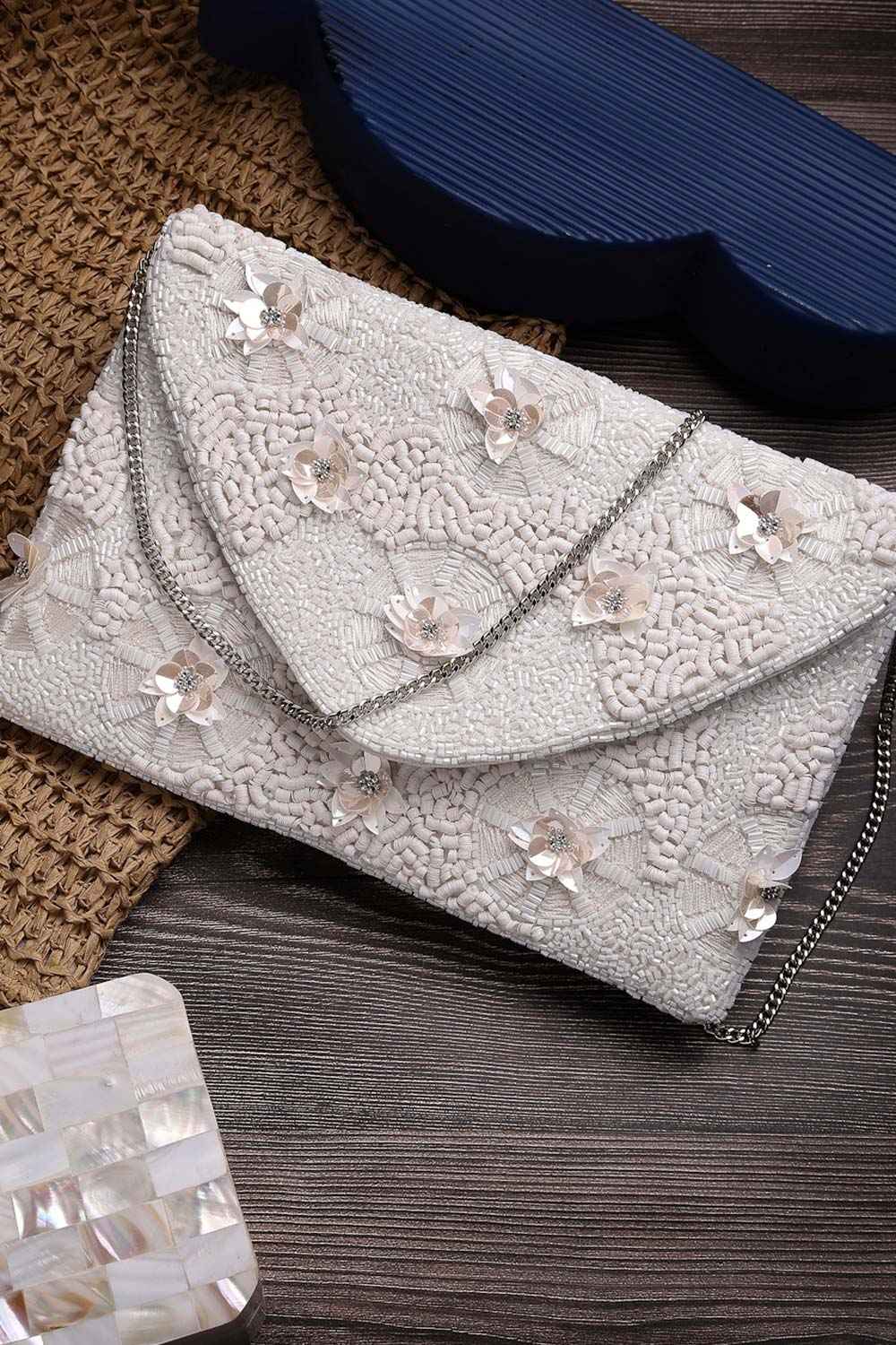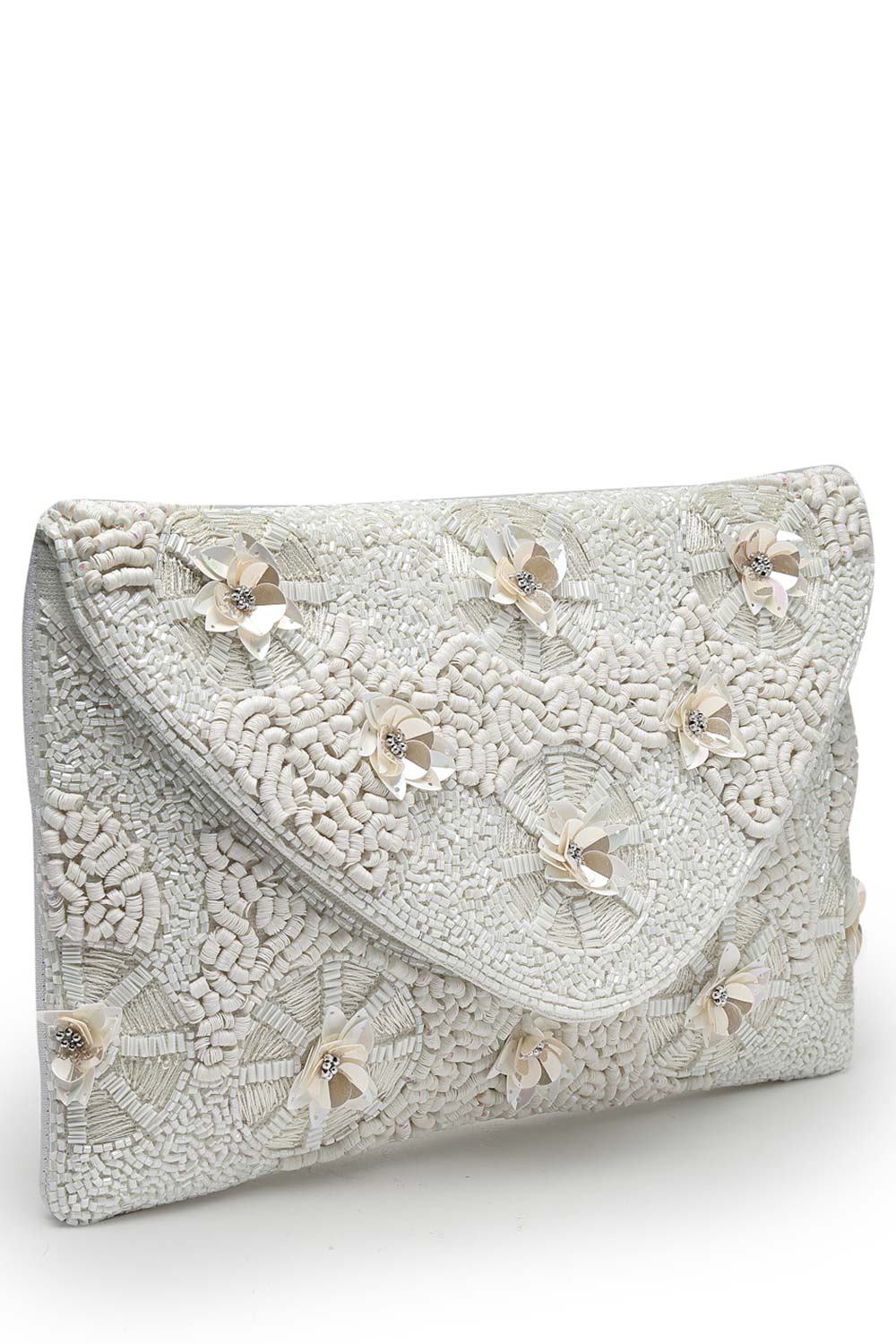 Boho White Floral Embellished Cotton Canvas Sling Bag