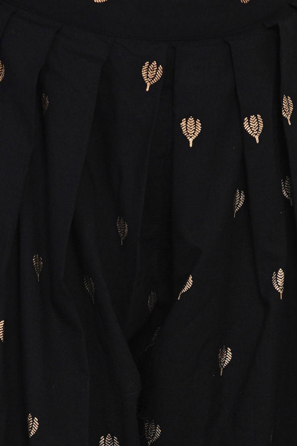 Girl's Black Embroidered Cotton Kurta Set