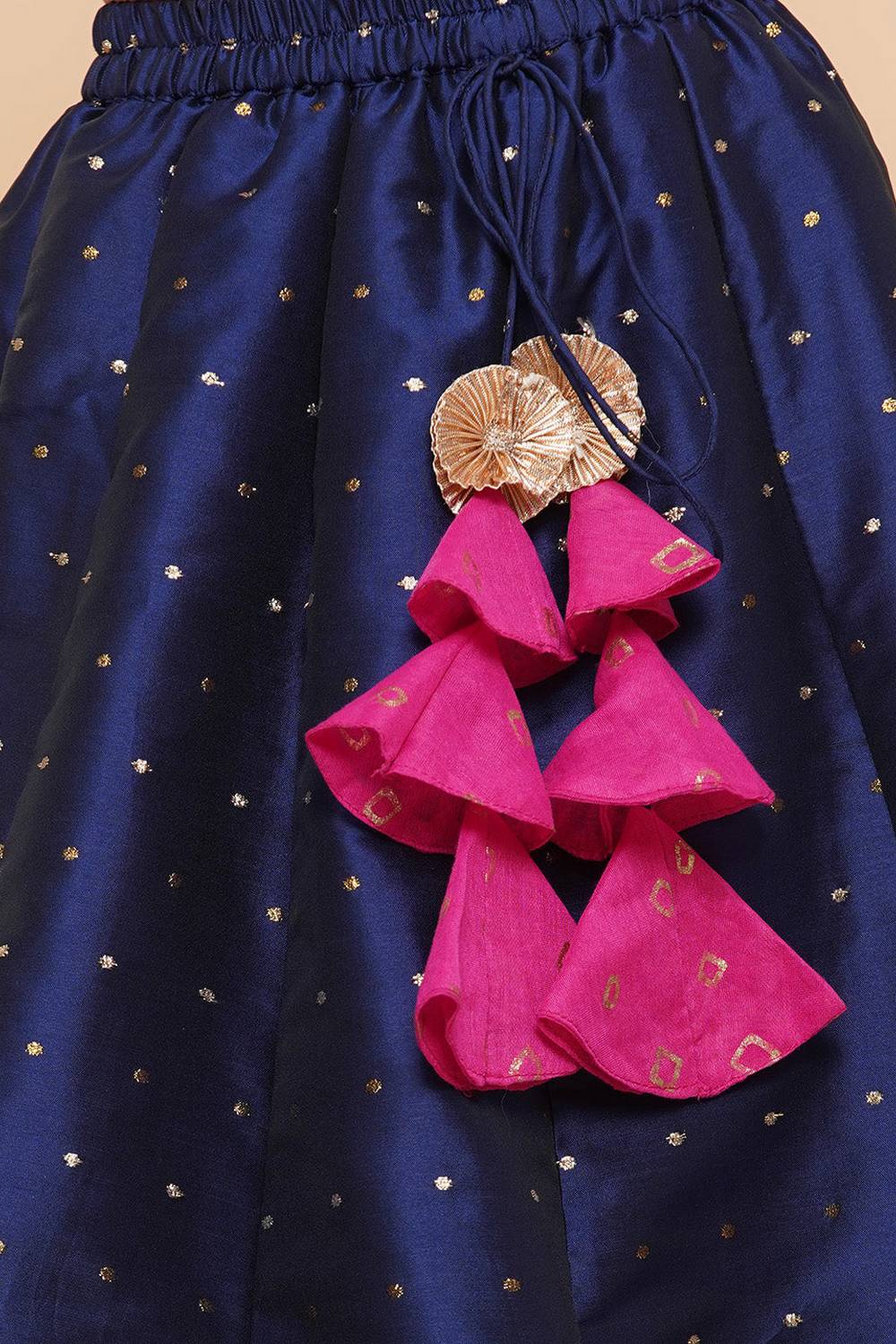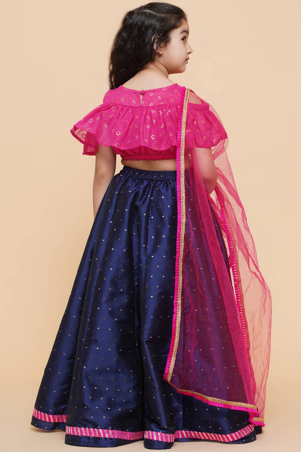 Girl's Navy Blue Foil Printed Silk Lehenga