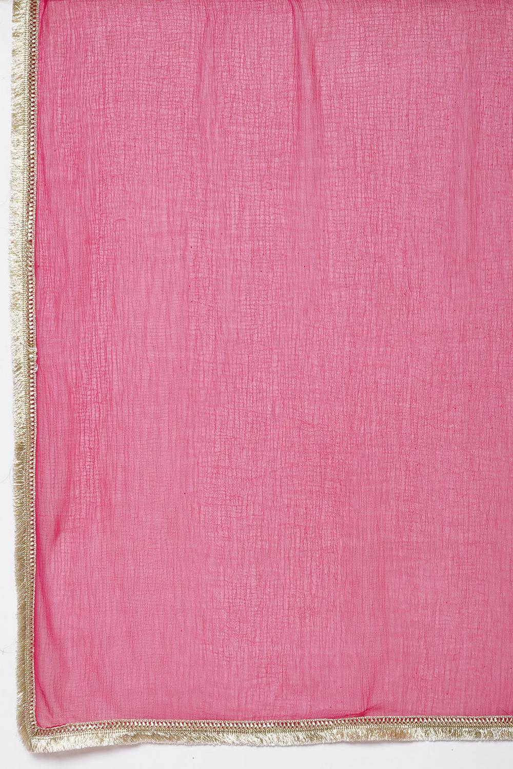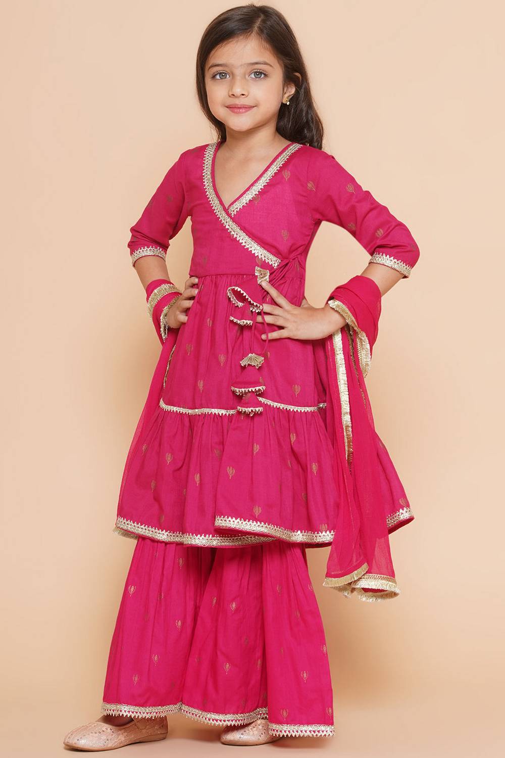 Girl's Pink Ethnic Motifs Foil Printed Cotton Kurta Set