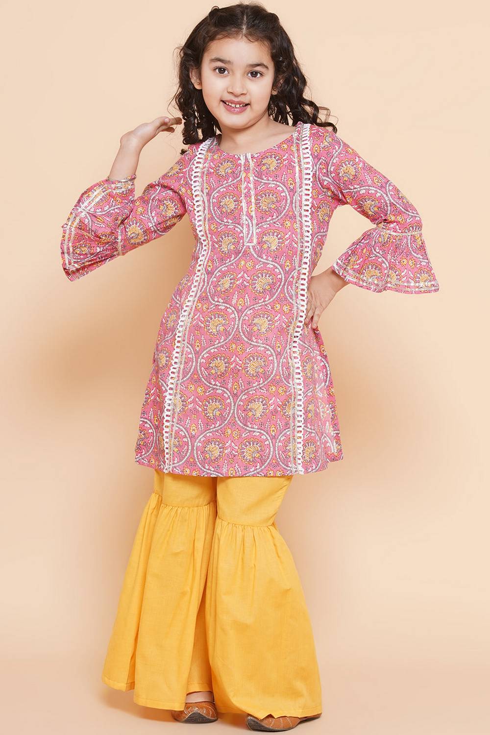 Let her embrace her roots with ourKurta Set an elegant choice for every occasion. Made with soft Cotton this kurta set ensures all-day comfort and freedom of movement. The Floral Printed add a charm to this outfit. Perfect for Festive,Party this kurta set is an essential addition to her ethnic wardrobe. Pair it with traditional earrings, colorful bangles, and simple sandals for an adorable look. Add a touch of tradition to her style with the timeless beauty of Kurta Set