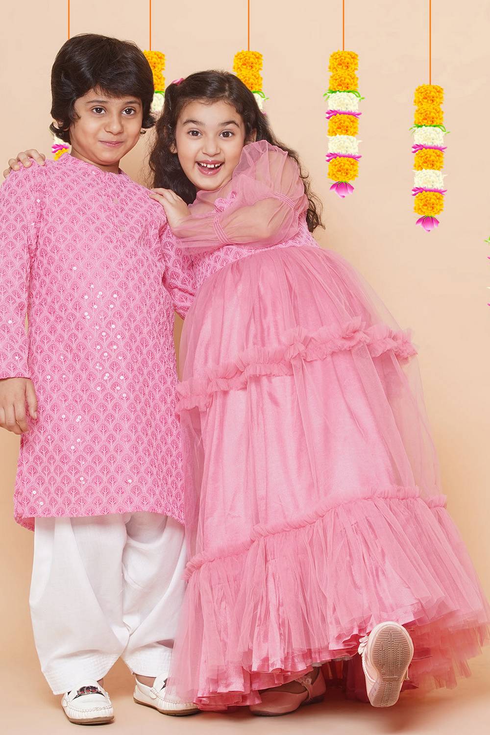 Let your little one dazzle with our Gown designed to bring out her inner princess. Crafted from soft and breathable Polyester this dress ensures all-day comfort for your child. The beautiful Sequin With Embroidered add a touch of whimsy to this adorable outfit. Perfect for Festive,Party this dress is ideal for twirling moments and unforgettable memories. Pair it with sparkly ballet flats, a matching hairband, and a lightweight cardigan for a complete look. Make every occasion magical with the charm of Gown