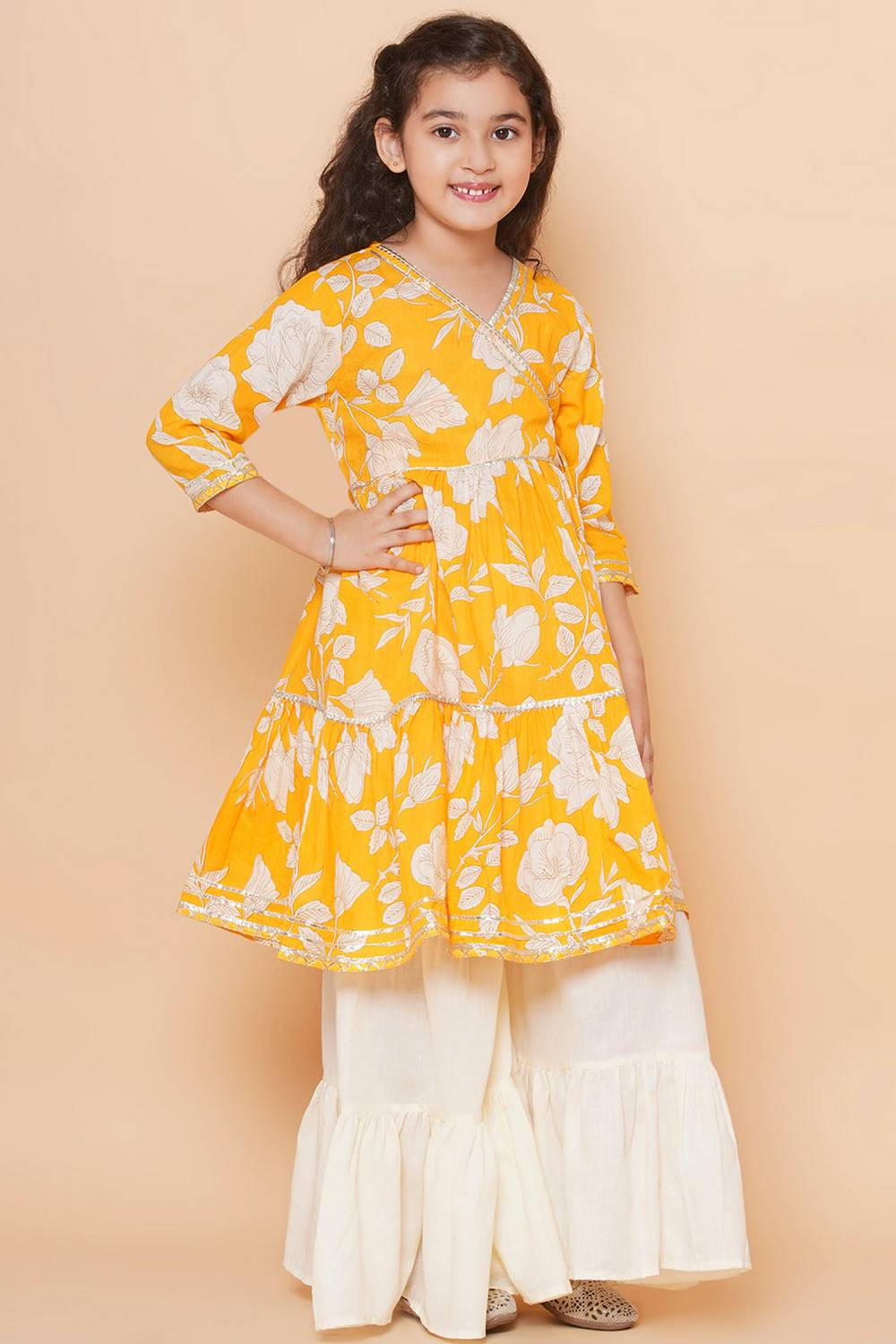 Girl's Yellow Floral Printed Cotton Kurta Set