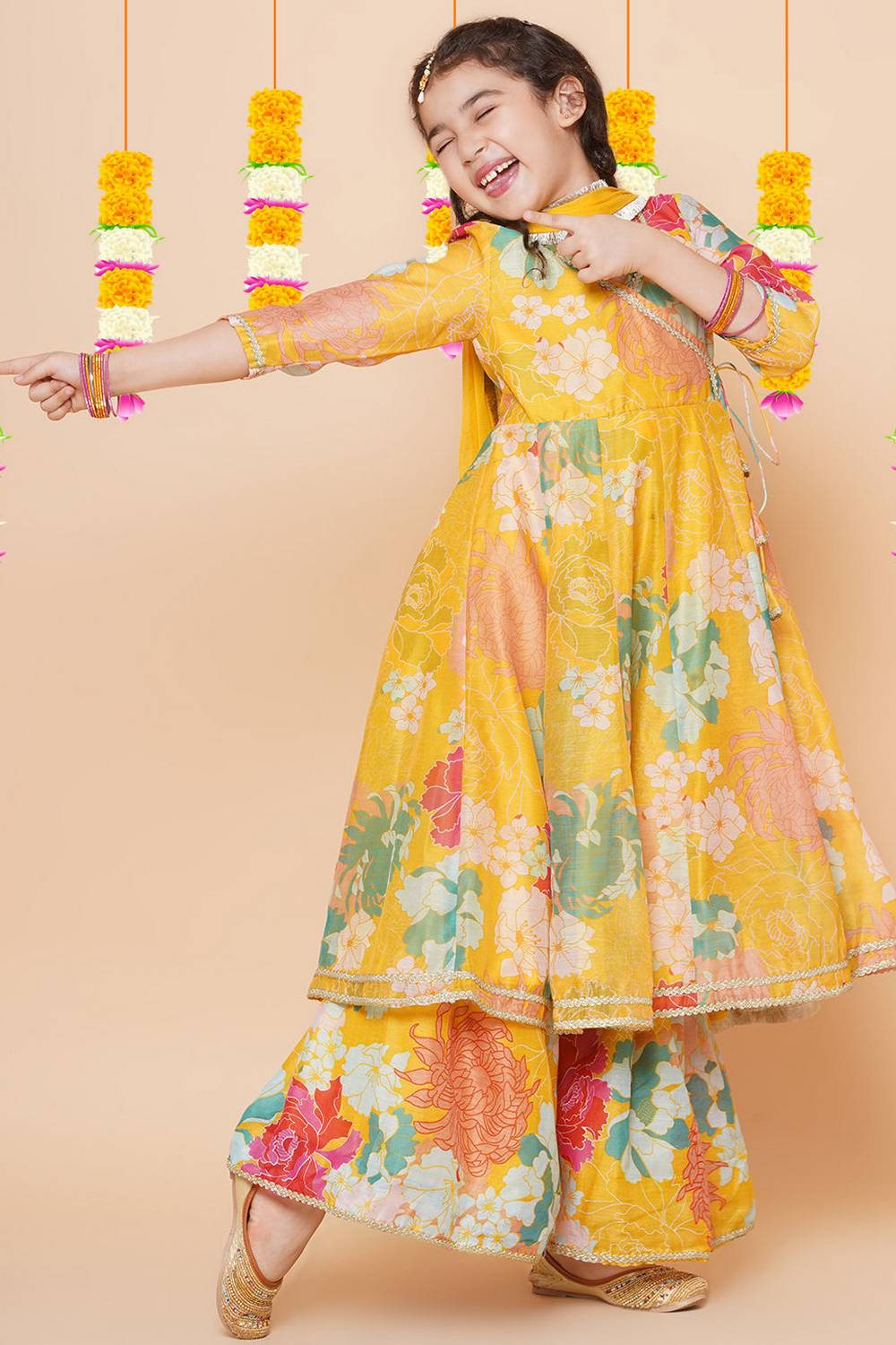 Let her embrace her roots with ourKurta Set an elegant choice for every occasion. Made with soft Silk this kurta set ensures all-day comfort and freedom of movement. The Floral Printed add a charm to this outfit. Perfect for Festive,Party this kurta set is an essential addition to her ethnic wardrobe. Pair it with traditional earrings, colorful bangles, and simple sandals for an adorable look. Add a touch of tradition to her style with the timeless beauty of Kurta Set