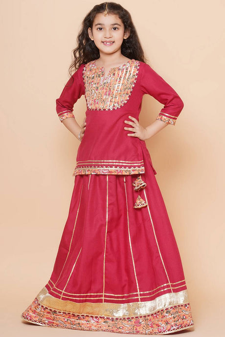 Girl's Maroon Lace Work Cotton Lehenga
