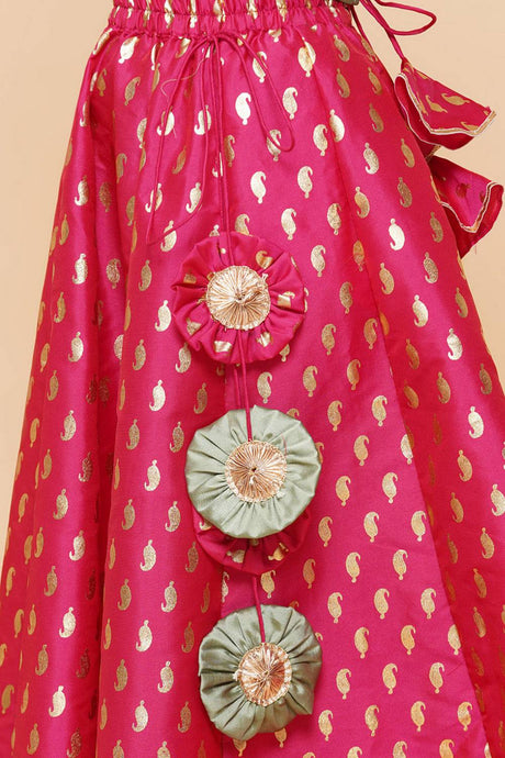 Girl's Pink Ethnic Motifs Foil Printed Cotton Kurta Set