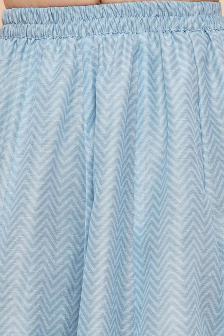 Girl's Blue Zig Zag Flower Digital Printed Silk Lehenga