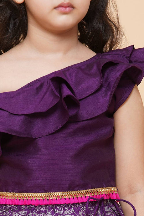 Girl's Navy Blue Foil Printed Silk Lehenga