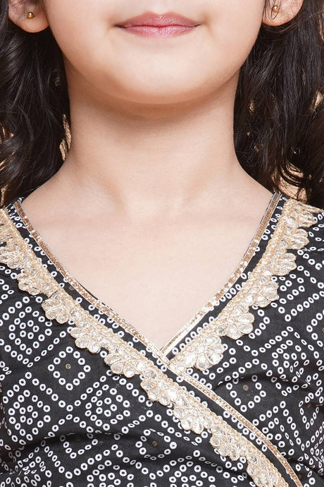 Girl's Navy Blue Bandhani Printed Silk Lehenga