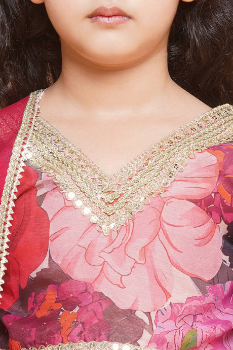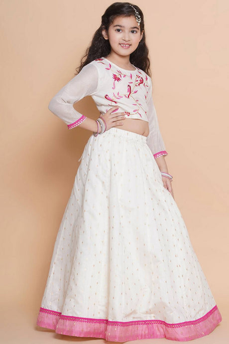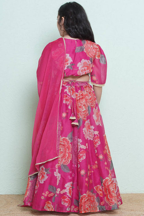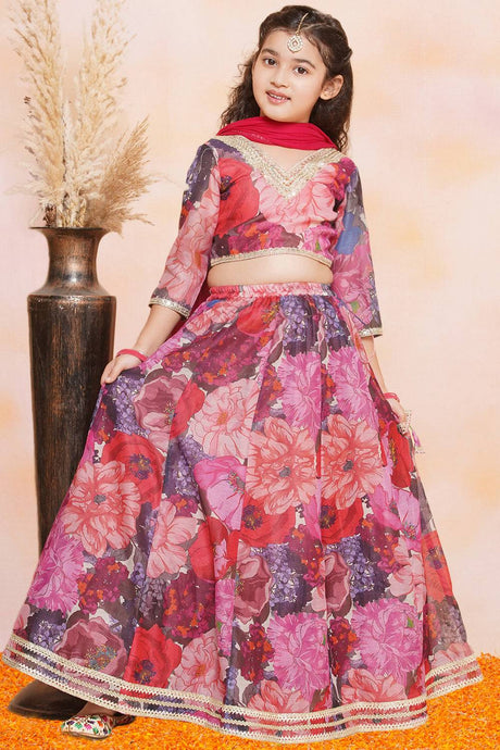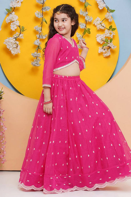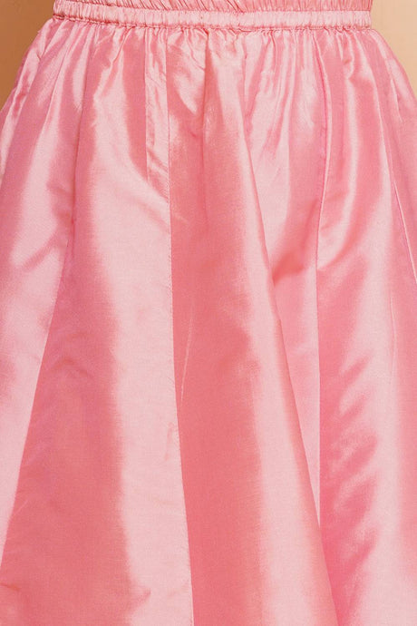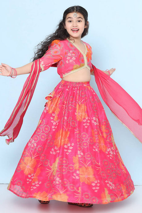 Girl's Pink Zig Zag Printed Silk Lehenga