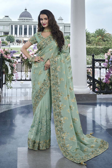 Sale price $51.00 USD Regular price $56.00Unit price /Unavailable Georgette Sequins Embroidery Saree In Pastel Green