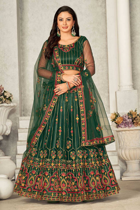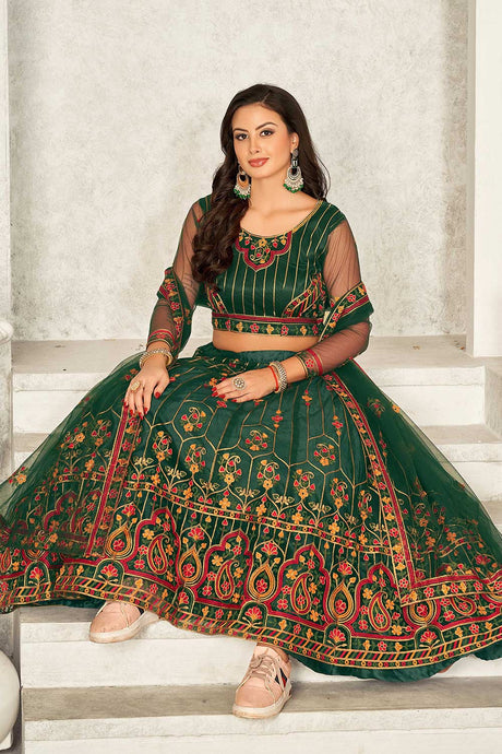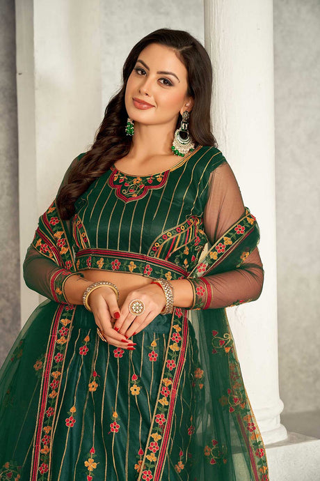 Dark Green Georgette Embroidery Round Neck Lehenga