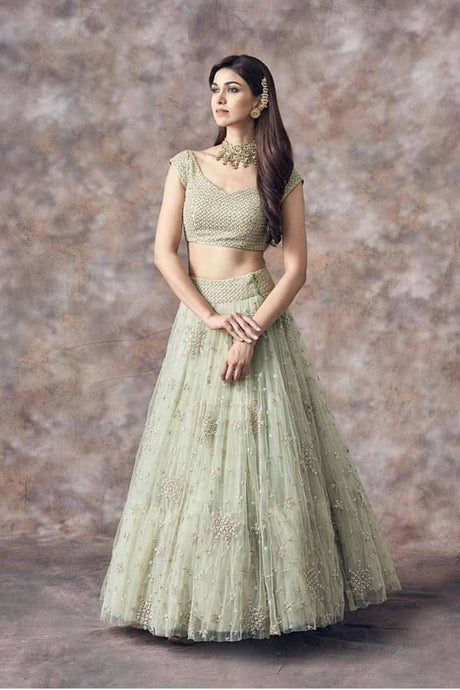 Sale price $94.00 USD Regular price $108.00Unit price /UnavailableGreen Net Embroidered Lehenga Choli