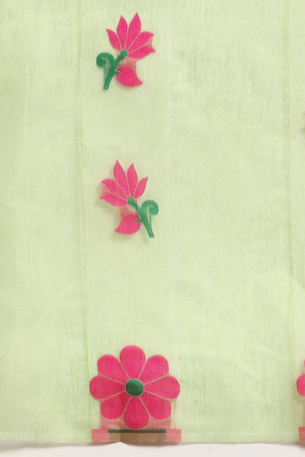 Saree has a floral design all over a saree with zari thread detailing on border; Saree is from Silk Land. Saree pallu has a paisely design for its great look. Specially design for Durga Pooja.