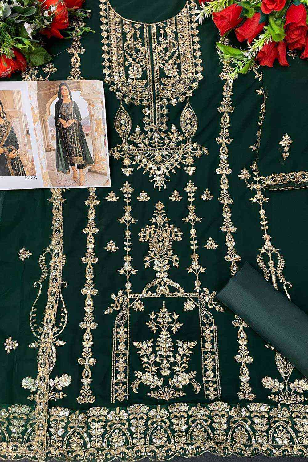 Green Floral Embroidered With Sequins Georgette Salwar Suit Set