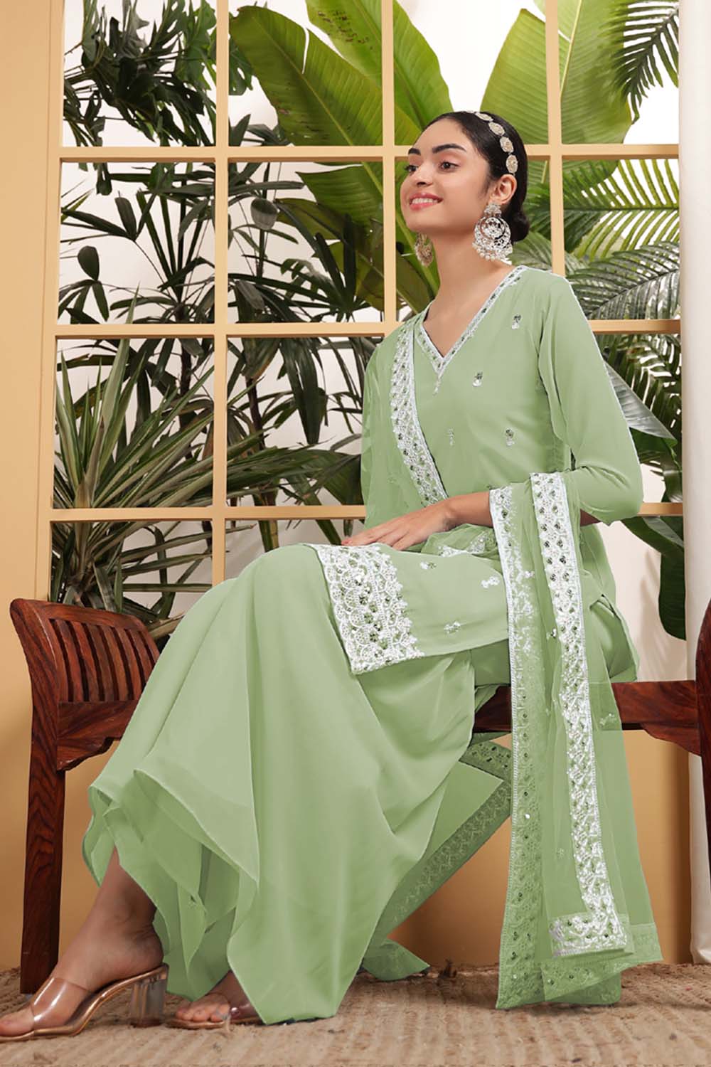 Green Sequin with Embroidered Georgette Sharara Suit Set