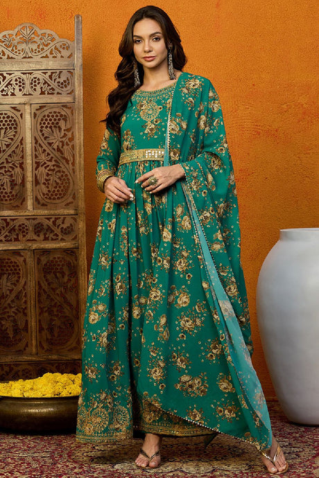Green Georgette Floral Printed Flared Anarkali Suit Set