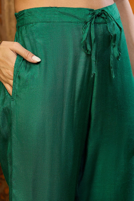 Green Silk Blend Solid Woven Design Flared Empire Kurti Pant Set