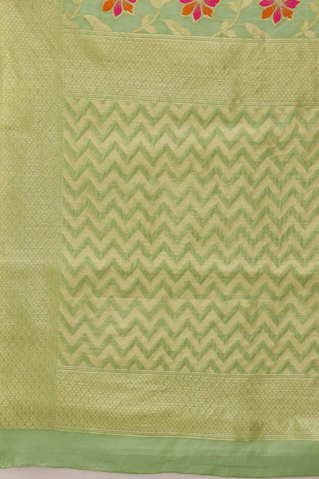 Green Geometric Printed Woven Soft Muga Cotton Saree