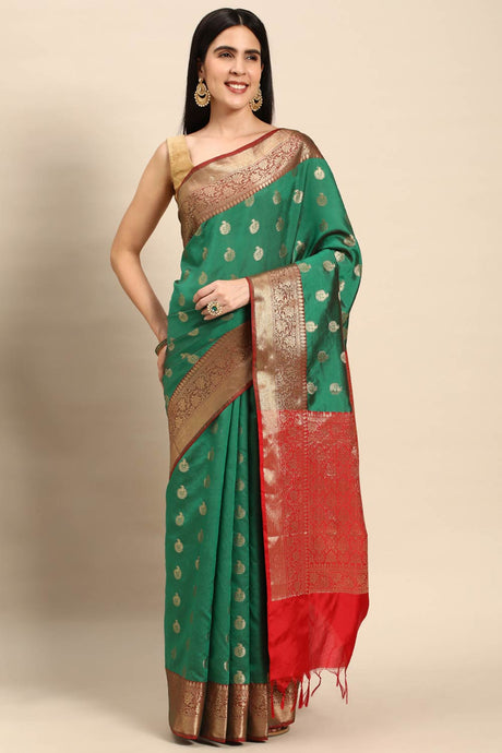 Green Silk Blend Self-Design Saree