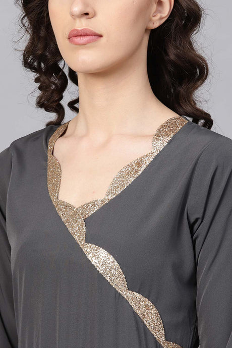 Grey Soild Chinon Anarkali Suit Set