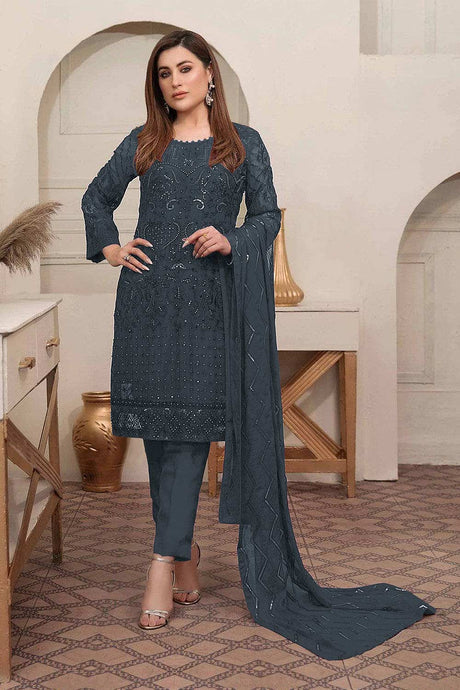 Grey Sequin with Embroidered Georgette Anarkali Suit Set