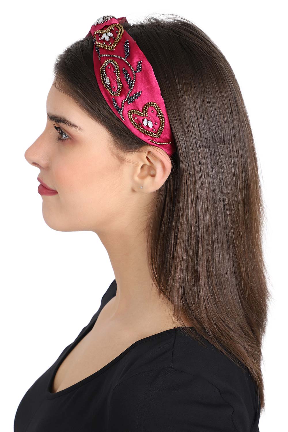 Getting ready for a friend's wedding & a fancy brunch & or want to look simple yet adorable for a party? Our hair accessories will be a perfect companion with your outfits for any occasion and will blend in seamlessly. Made from finest & comfortable and shiny magenta satan & this beautifully hand embroidered boho hairband will match your taste and mood and give you an instant glamour uplift.